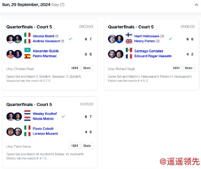 当日3场男双比赛赛果如下: